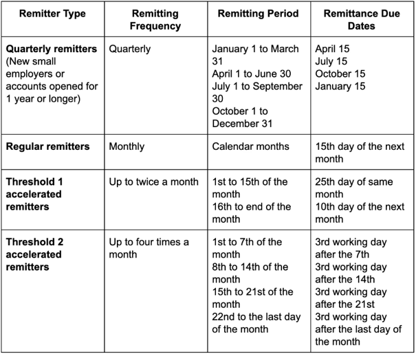 Employers are required to adhere to the payroll remittance timetable specified by the Canadian government.